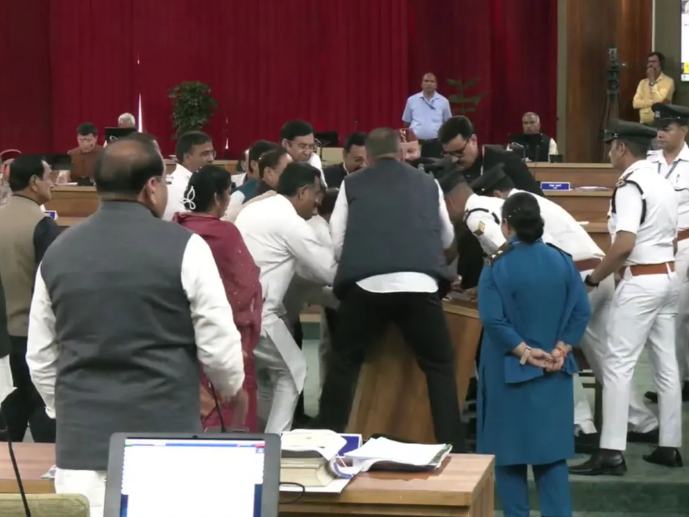 संसदीय कार्य मंत्री का माइक हुआ खराब. मंत्री सौरभ बहुगुणा की टेबल पर जाकर बोले संसदीय कार्य मंत्री. स्पीकर से हंगामा कर रहे सदस्यों को सस्पेंड करने का आग्रह किया. सचिव की टेबल पलटे जाने से सदन के कई टेबलों के माइक हुए खराब. सीएम का माइक भी खराब. दूसरी सीट पर जाकर बोल रहे हैं सीएम. दिवंगत पूर्व विधायक मुन्नी देवी को दी जा रही श्रद्धांजलि.